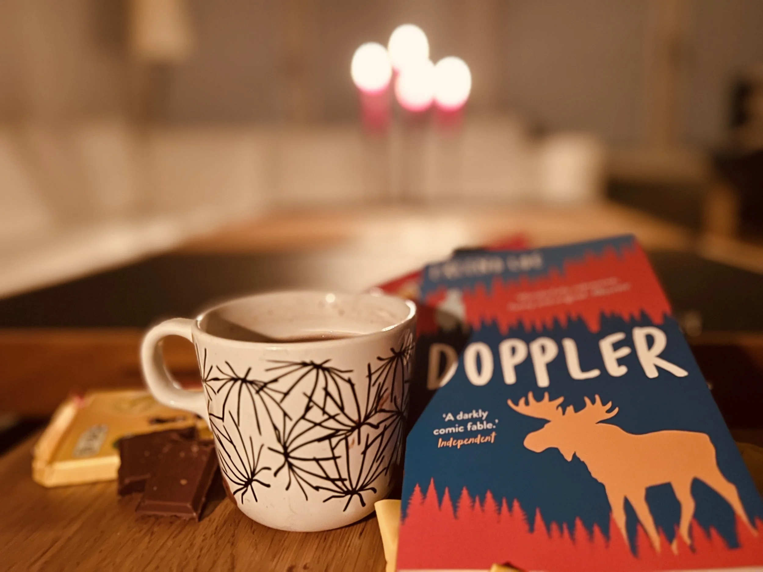 So, this week I did it, I finally broke out the candles and lit all five of them. I cozied up on the couch with chocolate, coffee, and a new book, Doppler by Erlend Loe. I’m still resting my knee, so the Fulbright book club, focused on texts by Norwegian authors, helps me to stay still for a bit, but productive.