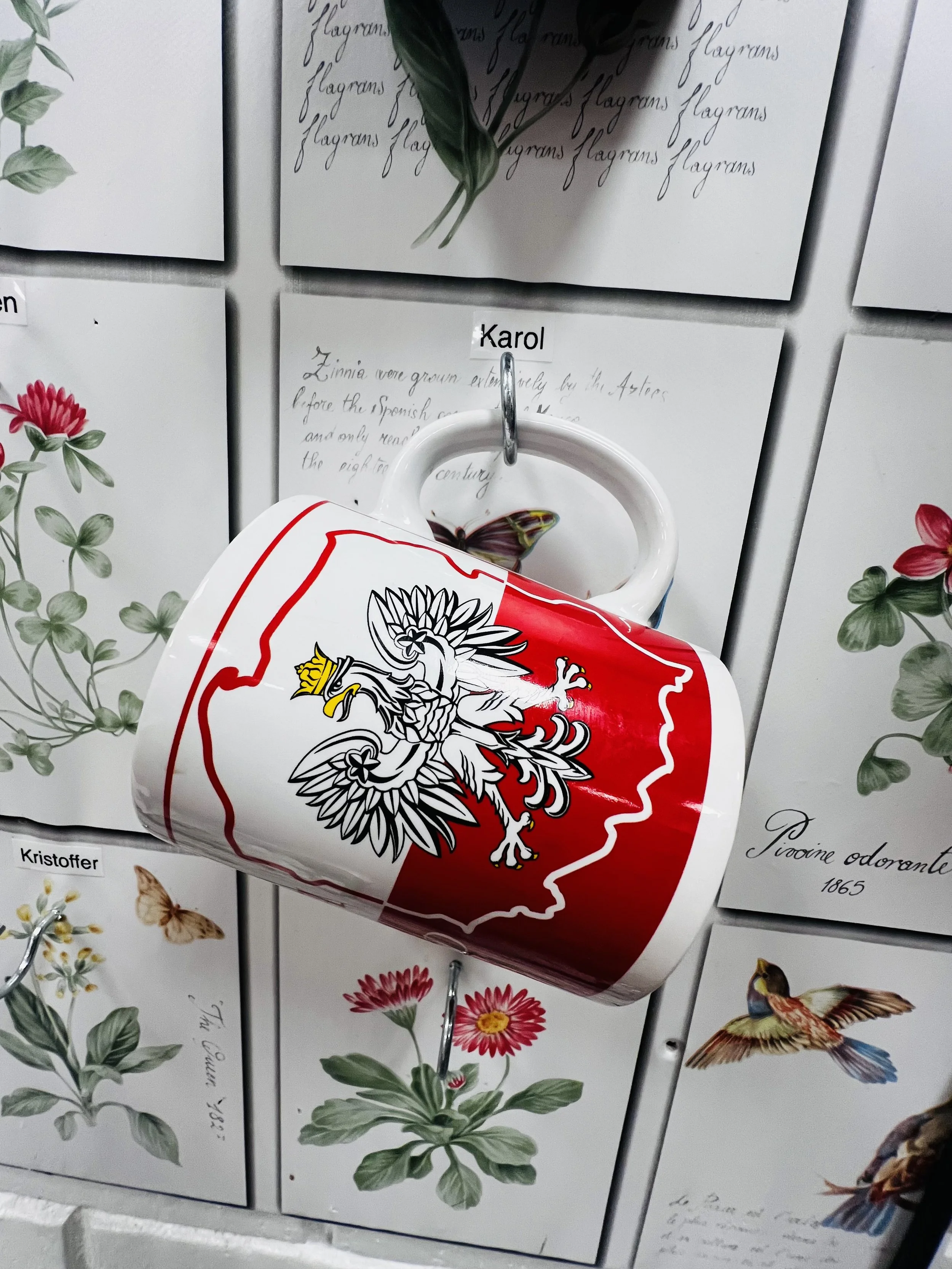 A special display for staff coffee cups.
