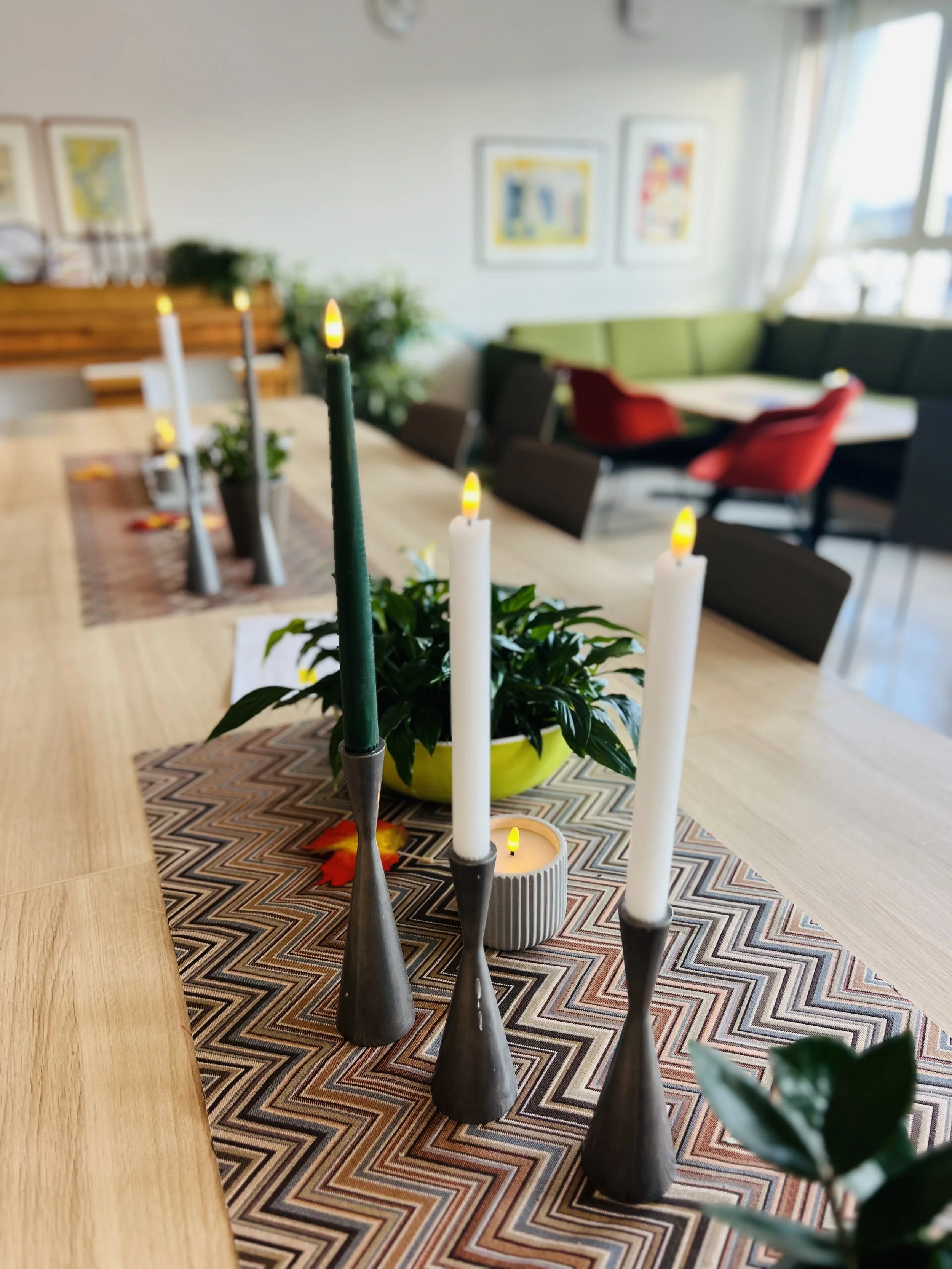 It's not just the coffee offers that are welcoming, but the personalrom and meeting times throughout the day. Before the school day starts, teachers typically meet in the personalrom to chat; not about school, but about life. Often, the room lights are dimmed, or the dark room is illuminated with candles on the tables.