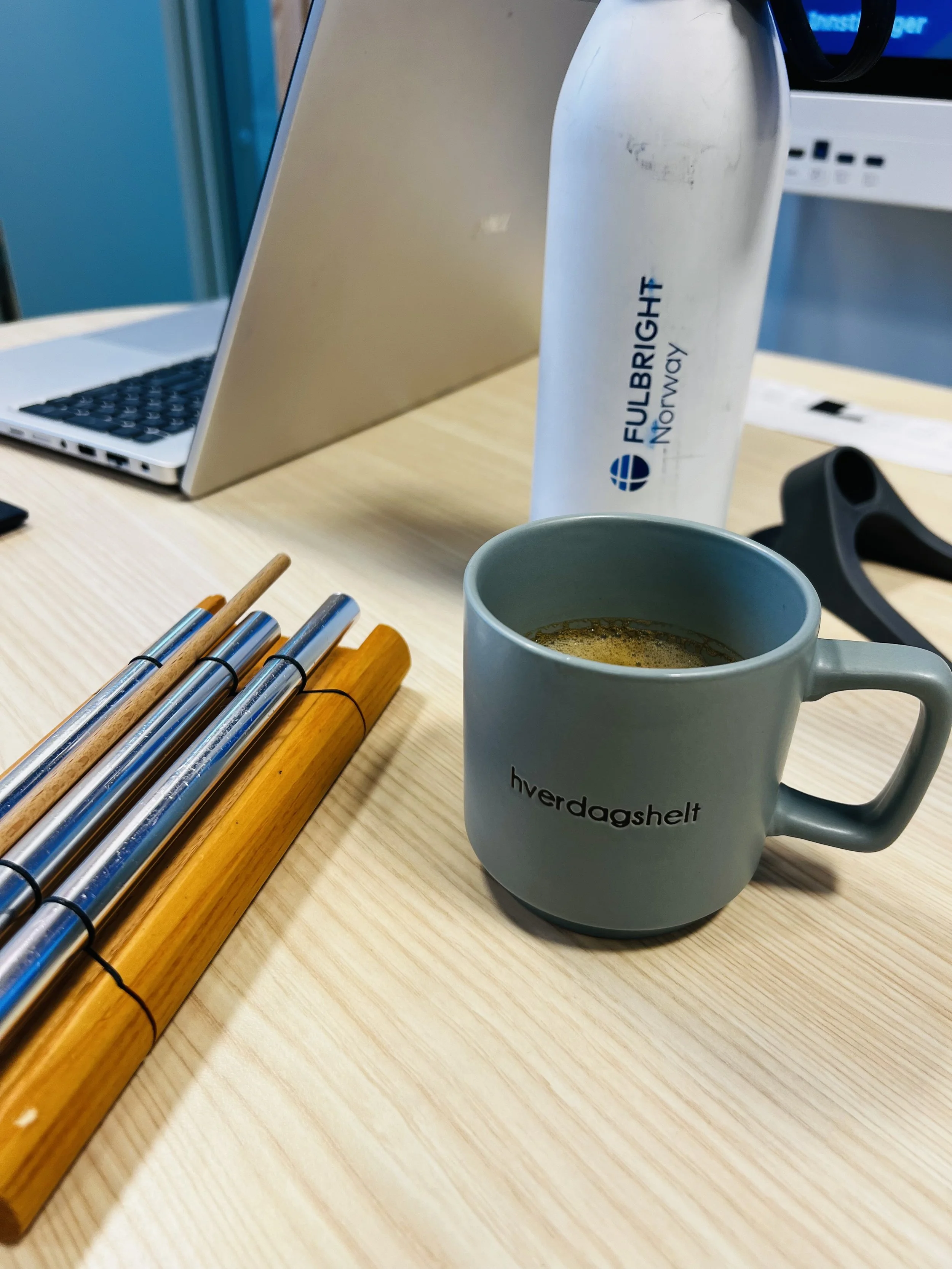 A pupil wanted me to have coffee, so fetched it for me with a special mug. Hverdagshelt means ‘everyday hero.’